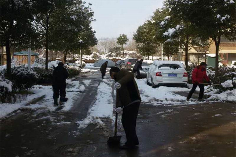 1月22日,祠山岗茶场一场暴雪如约而至,东昇花园职工小区盖上了厚厚一层积雪,严重影响到社区居民生活。23日上午,场部机关干部和物业办、松林居委会员工放弃双休日,纷纷自带工具走向小区东门、南门、广场及主干道,扫净小区积雪、消除安全隐患,方便了居民出行。(童朝伟)