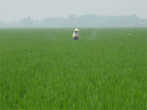 大圹圩农场坚持一手抓防汛抗洪,一手抓生产自 救。图为家庭农场正在防治病虫害。(杨朝幸)